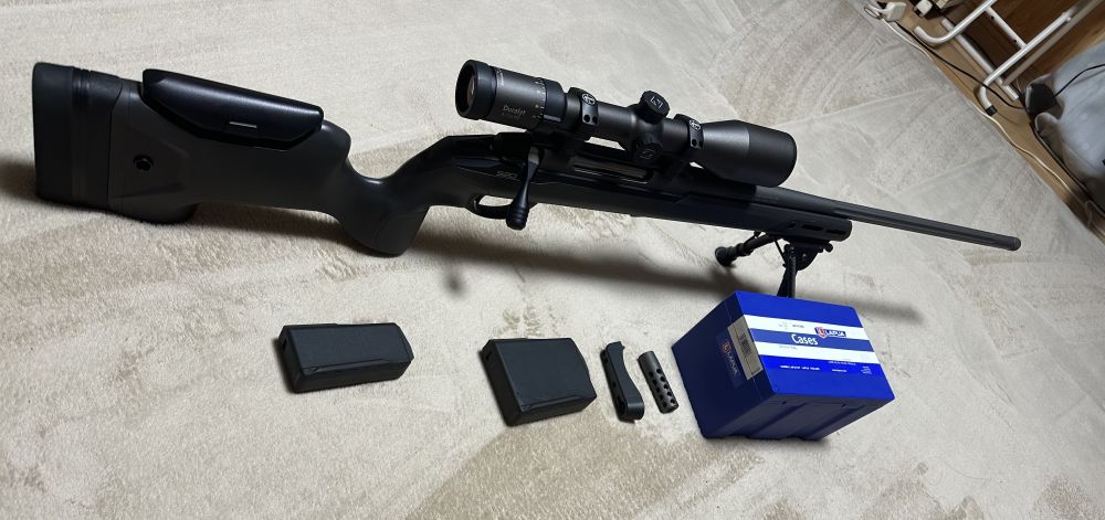 サコー s20 300winmag スコープ zeiss duralyt 3-12×50 5発弾倉、2発弾倉、マズルブレーキ、ストックレンチ、新品ラプア薬莢100本(写真の為開封) 新銃で購入後24発撃ってます。 銃に傷はありません。 実猟未使用、射撃のみの使用です。 スコープは前の銃より外した物を着用。 ゼロイン調整済み 購入者にはレシピ教えます。