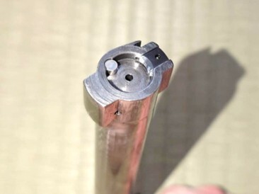 軽量化のためフルートを切ってあるほか、先端にマズルブレーキ装着用のネジ切りがしてあります。