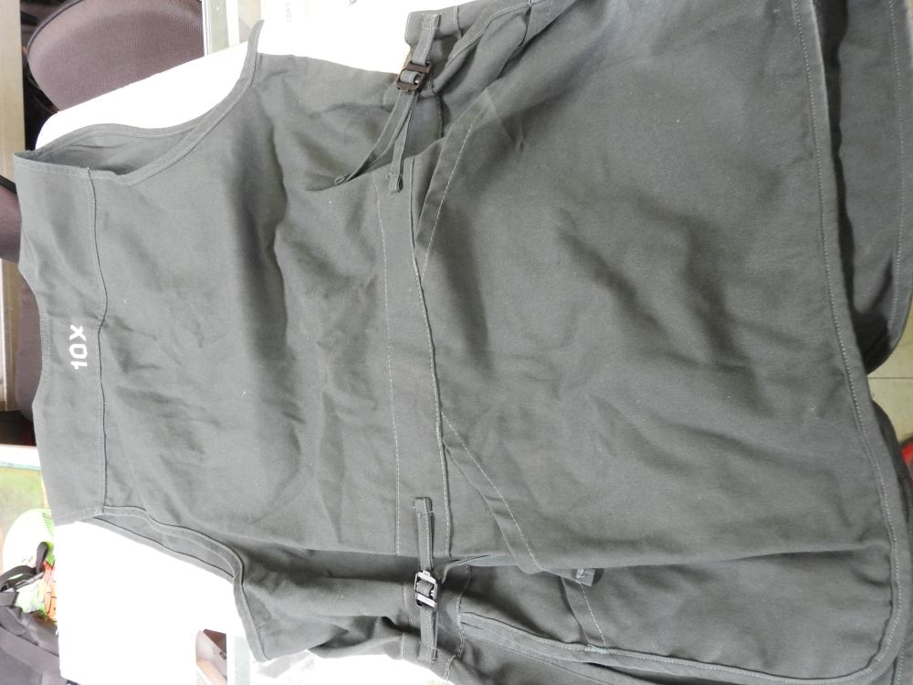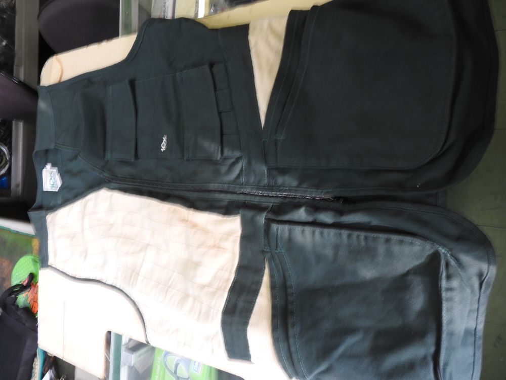 USA/10X射撃チョッキ USAサイズ(L)少し大きめです。 映像ですと、黒く見えますがグり-ンです、右胸白い部分はいろ抜けです。 厚手の為、夏の使用は?です。 レタ-パック送料