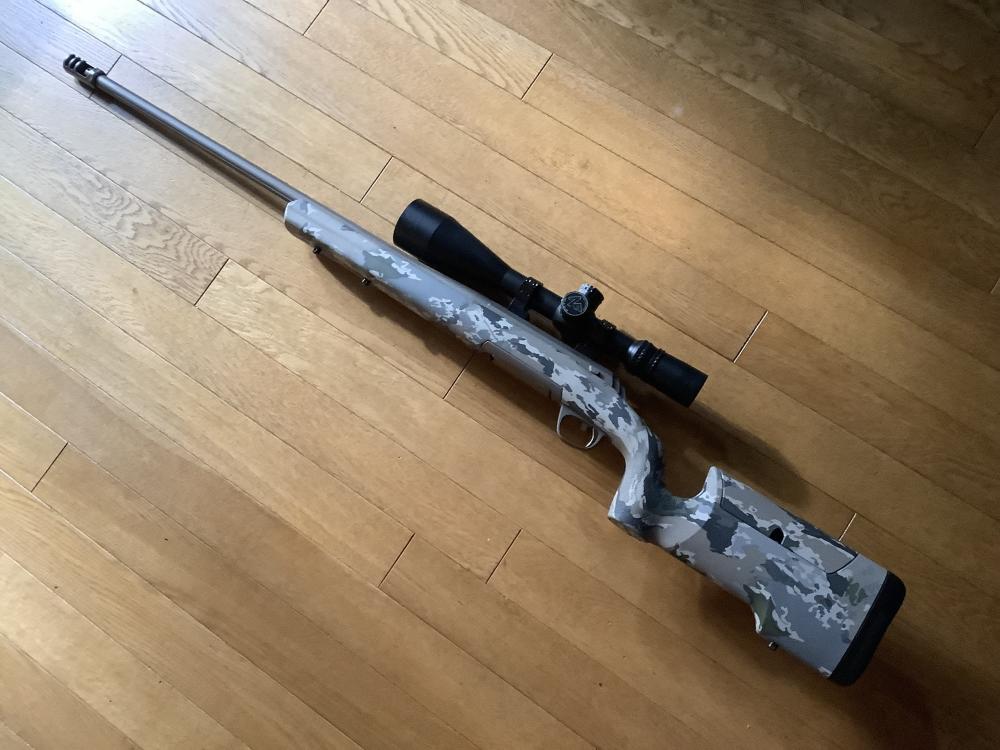 口径は6.5クリードモアです。データーをとるのに100発撃ったのみです。射撃場のみでの使用なので傷は無いと思います。スコープは付きません。別途相談ください。6.5クリードモアの有効性を感じ、カスタムでもう一丁作成したので、この銃の出番は少なくなりそうです。欲しい方がいればお譲りしようと思います。定価が385000円、それにスコープリングを購入しています。30万でお願いします。送料は別です。 |