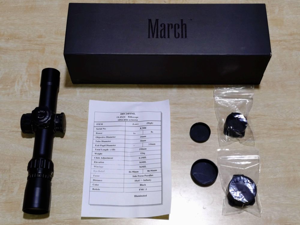 また、Marchスコープの1倍は真の1倍の為、両眼で見た時にスコープの像と肉眼の像が一致し、広い視野を使用して射撃が可能です。