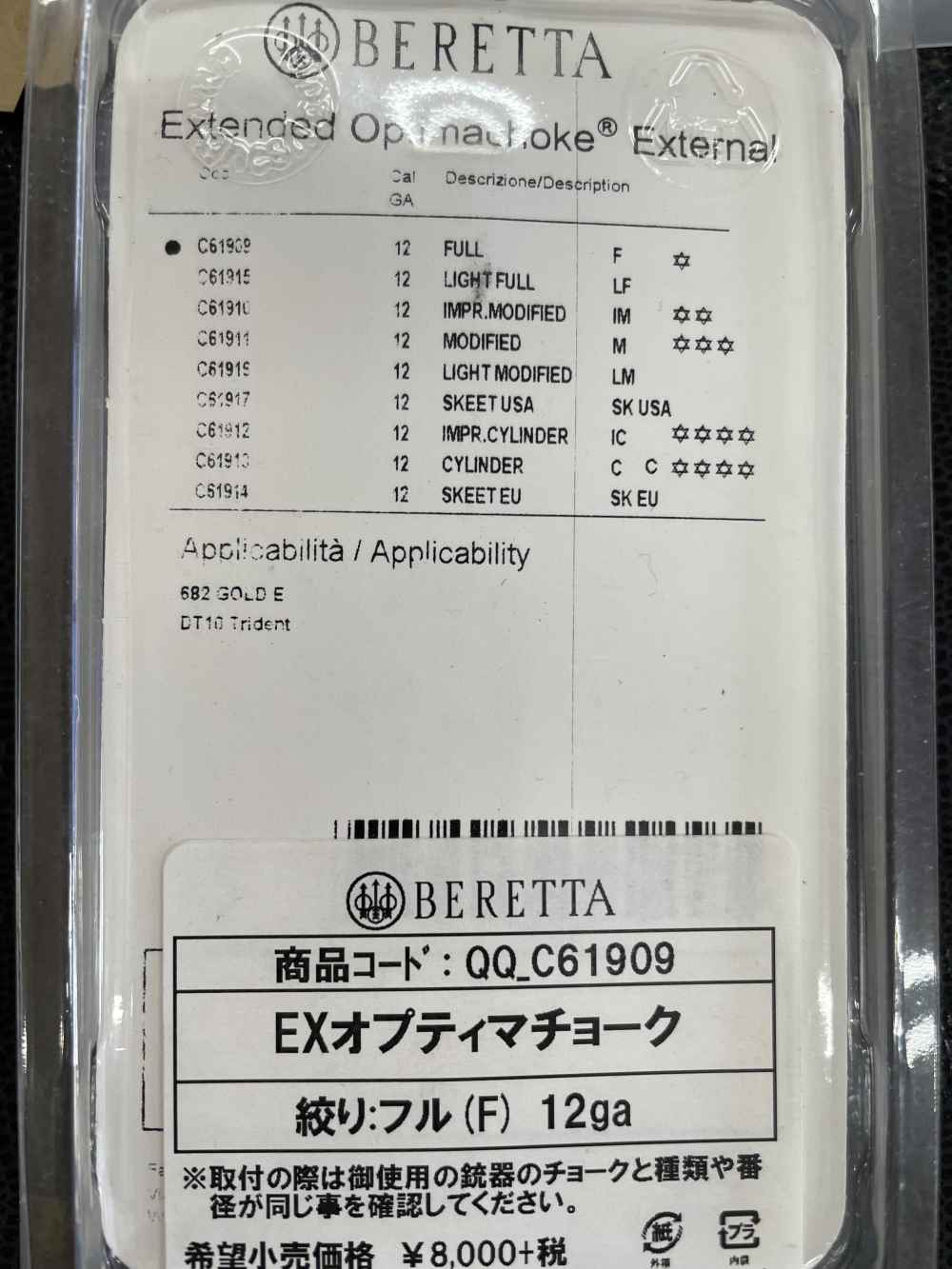 ベレッタ EXオプティマチョーク 12番 絞りはフルです。 外箱に少しへこみがありますが、 中身は未使用です。