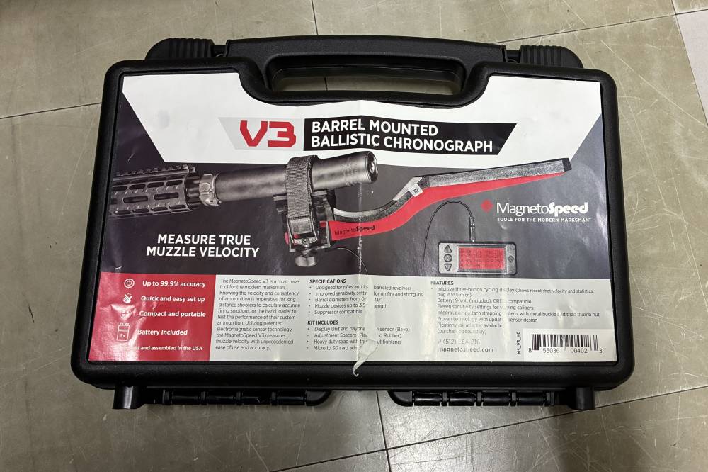 MagnetoSpeed V3 Ballistic Chronograph in Hard Case 弾速計になります。 新品で購入し4回使用しただけで、目立ったキズ、不具合はありません。 英語の説明書がついてます。 中古品につきノークレーム・ノーリターンでお願いいたします。