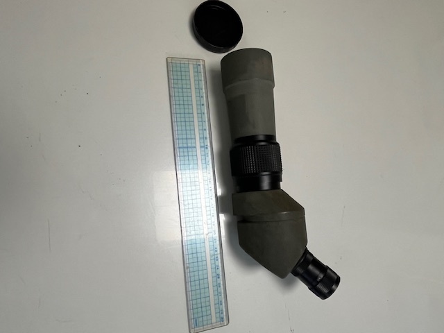 スコープは11~33×です。キャップは接眼部ありません。 一脚は机に固定して10m~100m射撃の監的に最適です。 どちらも全長が30cm以下で持ち運びに便利です。 送料は受取人払いにて願います。
