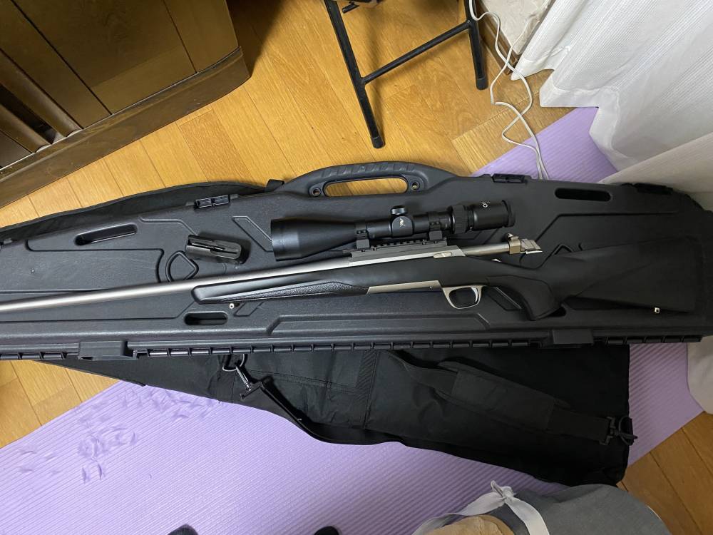 ステンレスストーカー ケース 弾倉2個 スコープ付き 3-12 日本製スコープ 600くらい撃ってます 今でも100メーター約100円玉くらいなります ストックは手直ししました