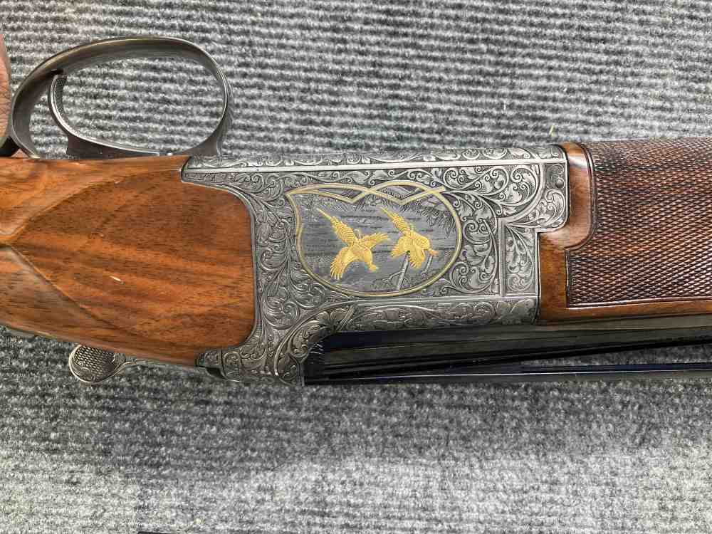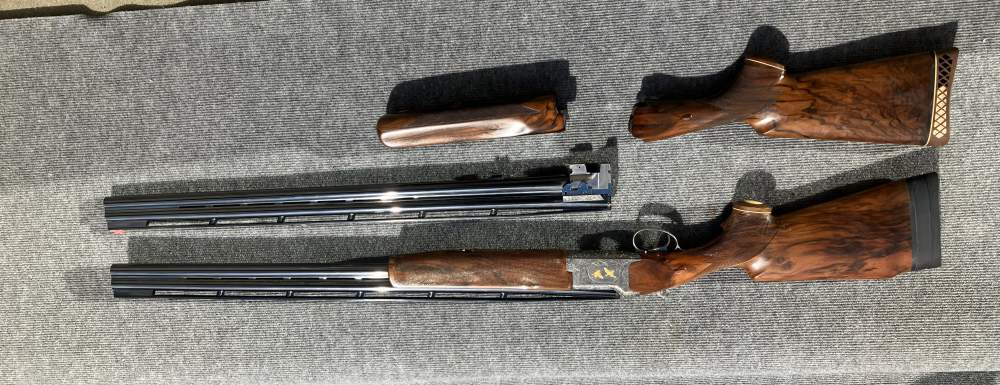 元々、替銃身もトラップ銃身だった様ですが、現所持者が片方の銃口を加工して口径を広げてスキートを撃てる様にしたそうです(銃身長約30インチでハイリブ仕様の為、スキート銃身とは別物と考えて下さい)。