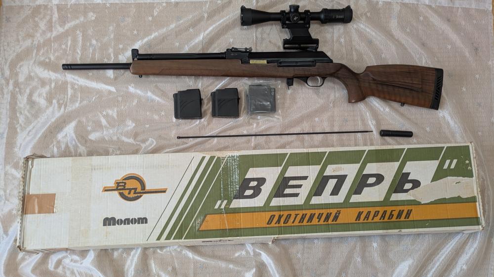 2017年にデッドストックの箱入り未登録を購入しました。サブで使ってたので発射総数は300発程です。ライフル自動となると選択肢が少なくとても貴重だと思います。他のモロトはストックの色が白っぽいのですがこの個体は初めから濃い色虎目でした。大きな傷も無く綺麗に見えますがロシアクオリティーなので写真で判断して下さい。マガジン3個、マウントは純正、クリーニング用具、スコープはバリス3×9-40、元箱が付属します。 |