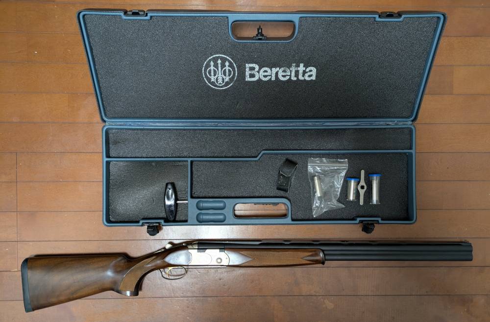 ベレッタの上下2連のスポーティング銃です。銃床が少し経年劣化していますが銃砲店で交換可能です。 私は特に気にせず使用していました。 軽くて良い銃だと思います。 所持許可証をお持ちであれば東京都内在住ですけれど来ていただければお見せすることも可能です。 チョークも5本あります。トラップ、スキート、狩猟全てに使用可能な便利な銃ですよ。