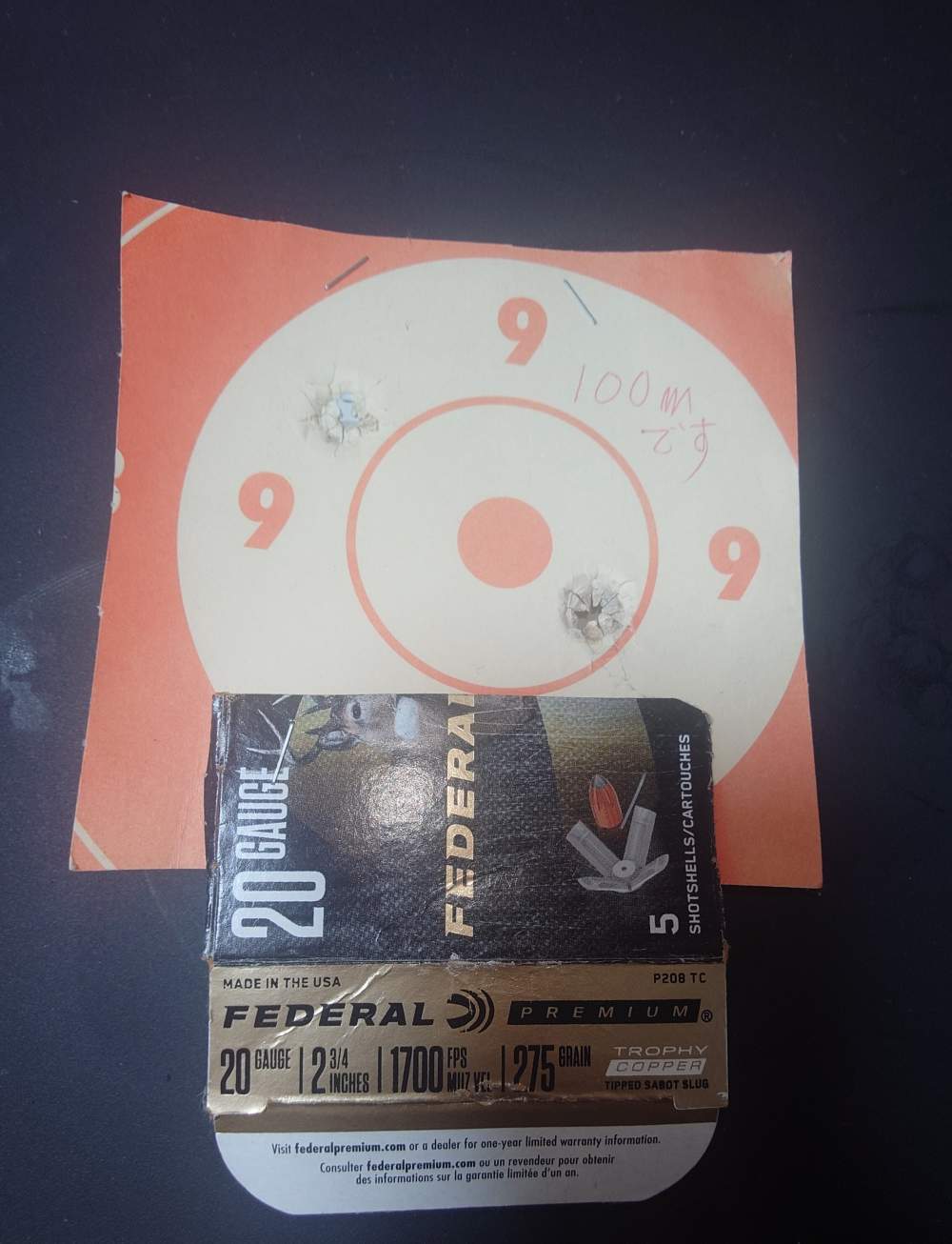 特に精度の良いハーフライフルで、画像の通り銅サボット弾と相性がよく集弾します。