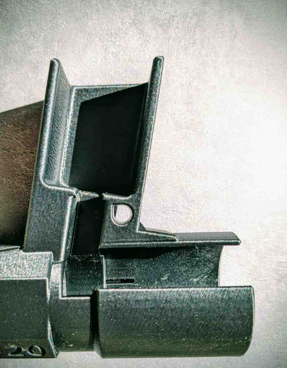 MSS-20専用のボルトケースです。 自宅での保管や運搬時に安心して使えるケースを目指して製作しました。 ボルトを挿し込んで降ろすだけで簡単に固定出来ます。 振り回してもガタつかず、不意に抜ける事はありません。 腰に吊り下げれば片手で抜き差し出来ます。 ・機能 射撃場など頻繁に抜き差しする際に便利なベルトフック 紛失防止用パラコード穴(5mmまで対応) ボルトノブ部分はボルトリフトに対応した拡張性有 底部水抜き穴 ・カラー 現在黒のみです。 3Dプリンター特有の質感が楽しめるグレア 落ち着いた高級感のあるマット の2種類を用意しました。 ・価格 グレア(6,000円) マット(7,500円) 送料別 お問い合わせお待ちしております。
