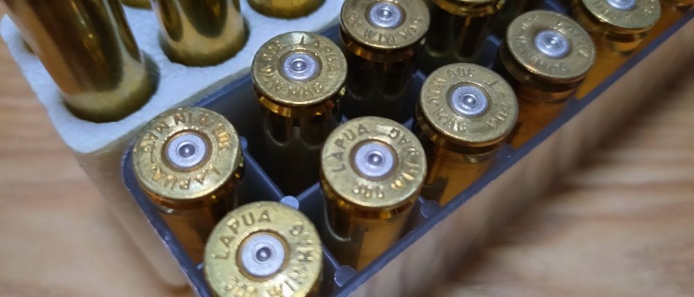 ラプア製 300WinMagの使用済み薬莢です。 使用済み雷管つき29個、雷管なし11個の計40個あります。 状態は画像を見てください。 送料はご負担ください。(薬莢のみの場合、レターパックライトで430円加算です。)