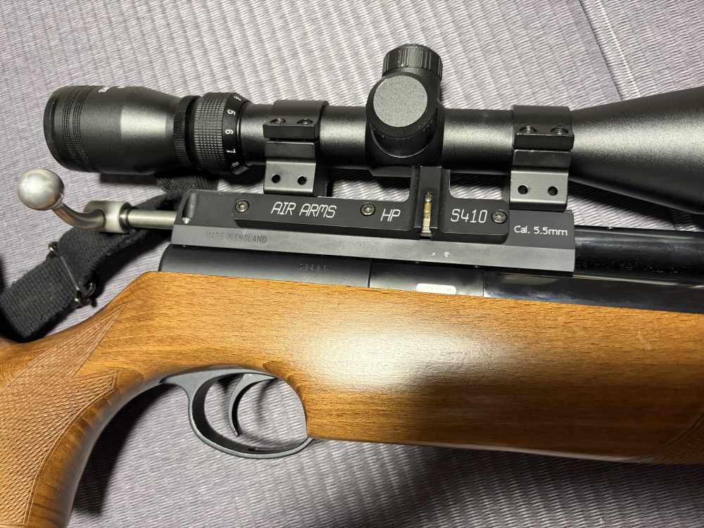 エアーアームスS410. 5.5mm 銃砲店で2015年に、整備済みの中古で手に入れました 2017頃銃身交換 2023年OH済み ご希望で銃ケース、カバー、ガンロッカー、弾500発、ハンドポンプ(空気は入れられるが、メーターの動きが悪い) ボンベからの空気入れ用アダプタ、おつけします。 【スコープ本体のみつきません】 お取引はご懇意にされてる銃砲店様経由でお願いします。送料、銃砲店様の手数料はご負担ください。 質問等お気軽にお問い合わせください。(付属品を増やしたので再投稿しました)