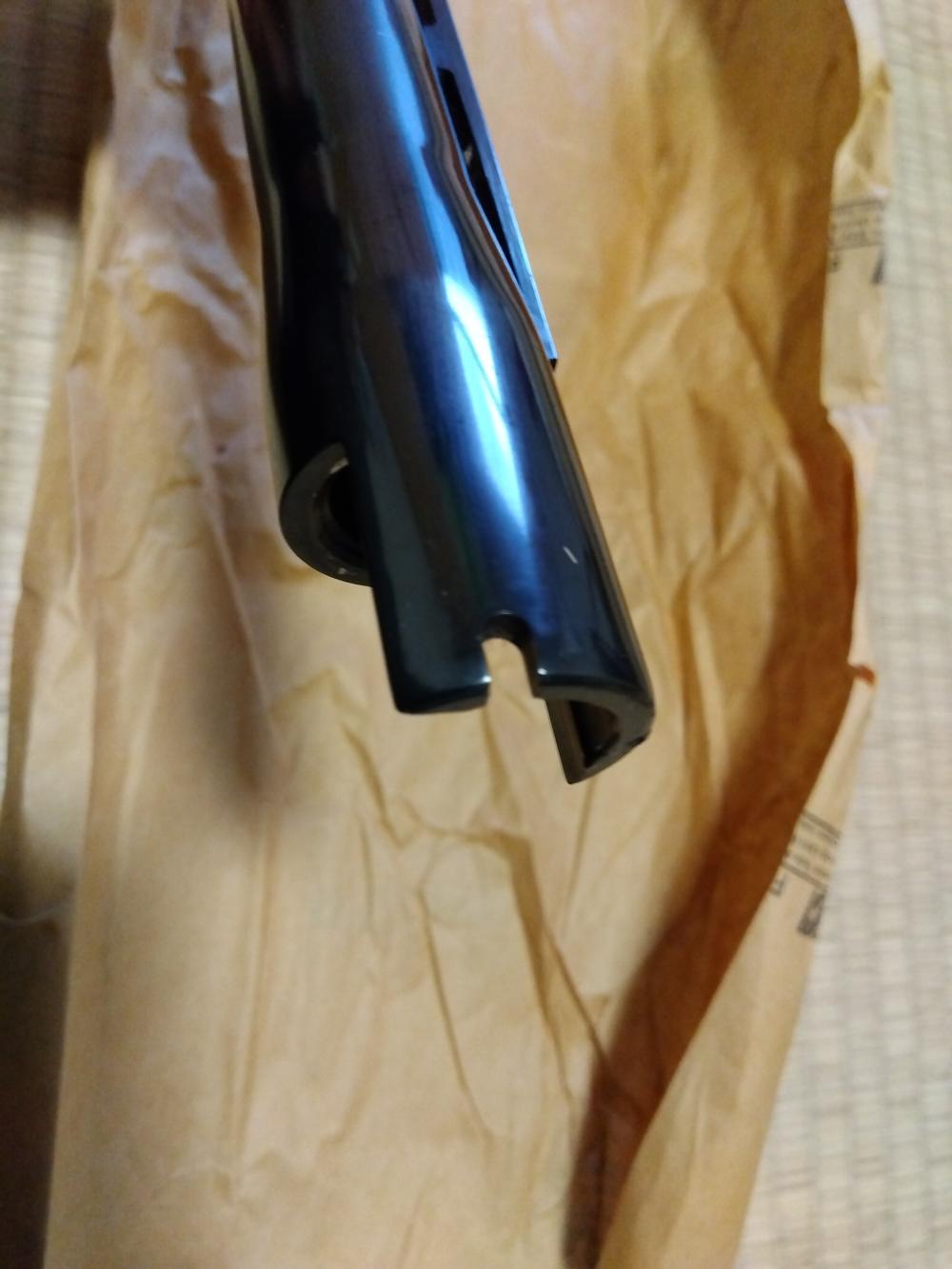 レミントン870の26インチリブ銃身をカットしてスラッグ用に使用していました。登録長さは52.9cmになります。 |