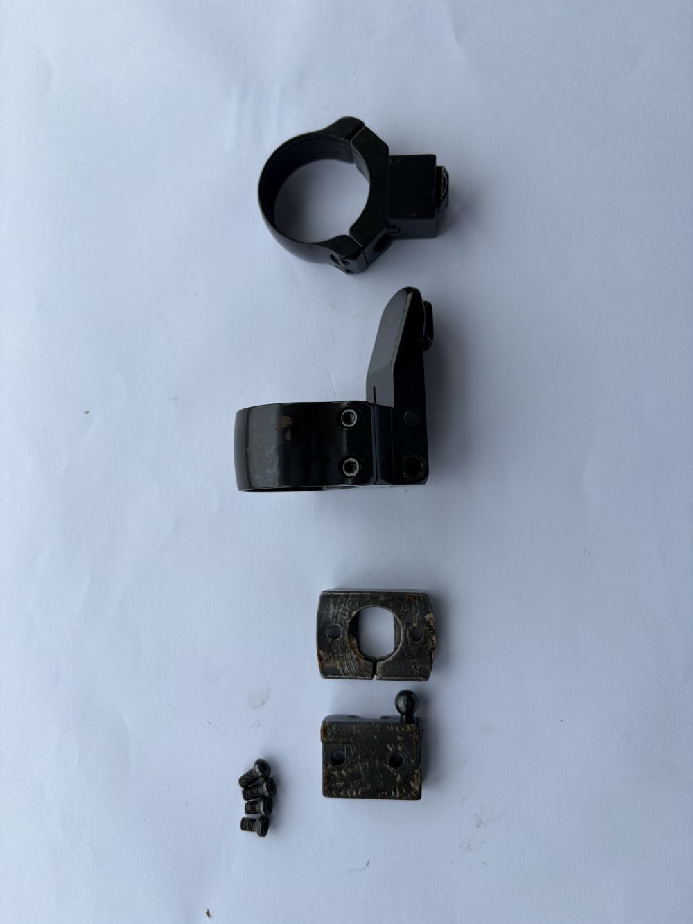 ドイツ製EAWスコープマウントセット。レミントンM700、ウェザビーmarkV(ホーワ製) ホーワ1500に仕様可。ベースのネジピッチが同じため。ツーピースベースにてロングアクション、ショートアクションどちらも使用可。BHが16ミリにて対物レンズ56ミリのスコープ利用可能です。程度は良好ですがベース裏側にエポキシ接着剤が付着してますので剥離剤等で取る必要有り。リングに少しサビが浮いてます。 (2026年04月16日 19時41分 追加)リング経30ミリです |