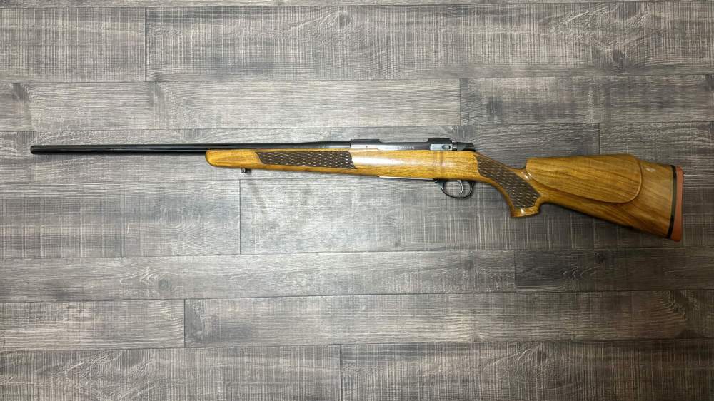 なかでも本個体は「デラックス」と呼ばれる上位グレードに位置し、標準モデルと比較して金属部品には徹底的に研磨された深みのあるブルー仕上げが施され、光沢仕上げされたストックには厳選された美しい木目とチェッカリング、装飾が施されています。