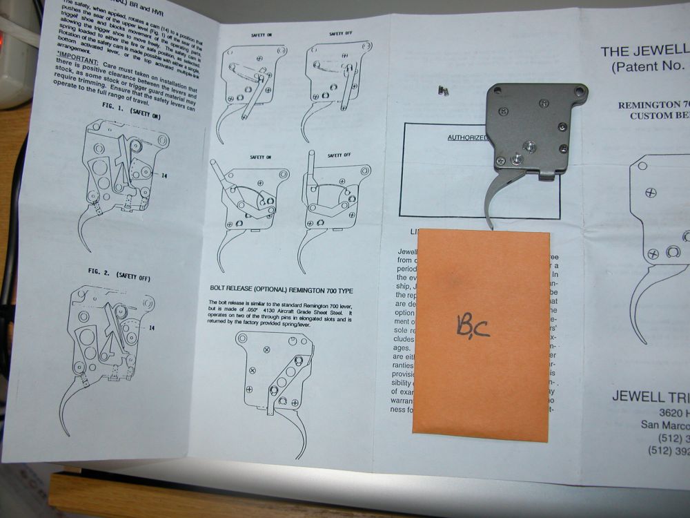 新品で購入のレミントン700のジュエルトリガーです、実猟には軽すぎて、取り付けて撃たずに外しました、取説付き、スプリング2個付き(茶封筒の中に入ってます) |