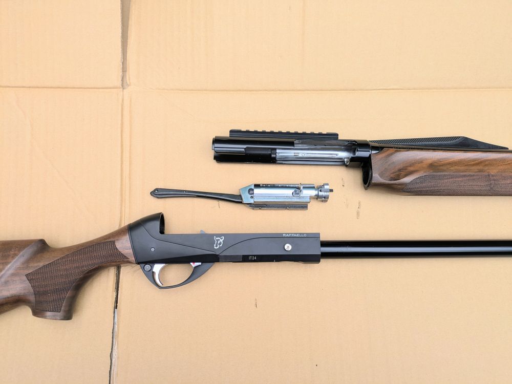 ベネリ20番の難点(マガジンへ装填する時のラッチが固くて指が痛くなる)で非常に使いづらかったので正規代理店でチューブマガジンのバネをカットしてもらい、さらに特殊なラッチに換装してあります。